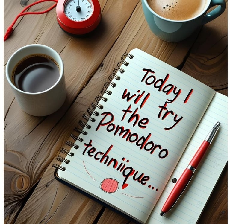 “Hôm nay mình sẽ thử áp dụng kỹ thuật Pomodoro vào việc viết báo cáo, mỗi phiên 25 phút và nghỉ 5 phút để tập trung tốt hơn.”