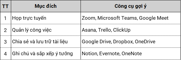 Các công cụ hỗ trợ là chìa khóa cho công việc từ xa. Dưới đây là một số công cụ hữu ích:.